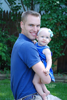 For the last few weeks, Alli has been saying "mama"... along with her other babbles... dada, baba, etc. etc... but not on a very consistent basis. (But yay, none the less, she's saying mama!) All day today, she has said mama, mama, mama non-stop. I believe it was right around Mother's Day, or shortly thereafter, where her favorite (and first) word that she said non-stop was dada. Being that this Sunday is Father's Day, Eric and I thought it was quite funny that she's saying mama now for 'his' holiday, and dada back then for 'mine'. Good ole' Ru, she's already confused about things... the thing we're most worried about is if she'll ever learn her real name. Is it Alli, Ru, Alli Ru, Rooster, or... who's this "Allison" character?